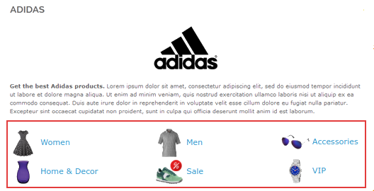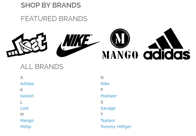 Mostrar logotipos em vez de rótulos no bloco de lista de marcas - Você também pode usar logotipos clicáveis para o bloco de lista de marcas.