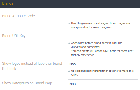 Código de atributo de marca - É possível configurar urls curtas e agradáveis para páginas de um atributo de marca (ou qualquer outro de sua preferência), por exemplo: example.com/canon.html example.com/nike.html Para gerar tais urls para um atributo , especifique o código do atributo aqui. Esse recurso funciona apenas para um atributo por vez.