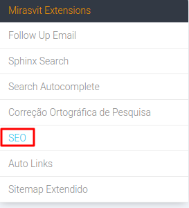 Vá para Sistema > Configuração > Extensões Mirasvit > SEO .