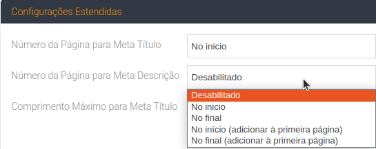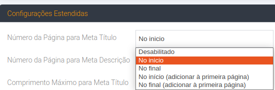 - Número da página para meta título - Adicione o número da página ao meta título. Exemplo: "Página 2 | Texto do Meta Título".