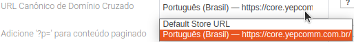 - URL canônico entre domínios - define o URL canônico entre domínios padrão para configuração de várias lojas.
