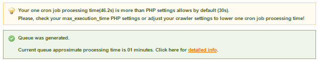 A fila é armazenada na tabela am_fpccrawler_queue e contém um link e um valor de classificação. Somente links com até 5 caracteres são adicionados à fila. A fila é preenchida com links e limpa até o tamanho especificado nas configurações após cada 500 links adicionados e também sempre que a geração da fila começa.