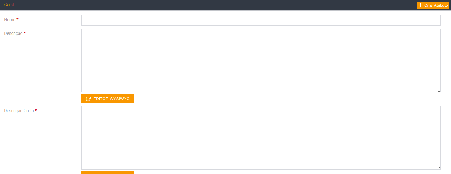 **Como este tutorial é simplificado, iremos abordar apenas os pontos principais da criação do Produto, demonstrando apenas o preenchimento dos atributos básicos, pois cada loja tem suas peculiaridades e atributos próprios o qual deverá ser preenchido caso a caso.