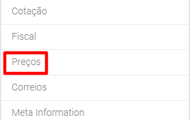 Aba Preço - Em Preço irá inserir o preço do produto - não informar o preço com vírgula e sim com ponto