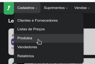 No canto Superior Esquerdo - Irá Clicar em: Cadastros - Produtos